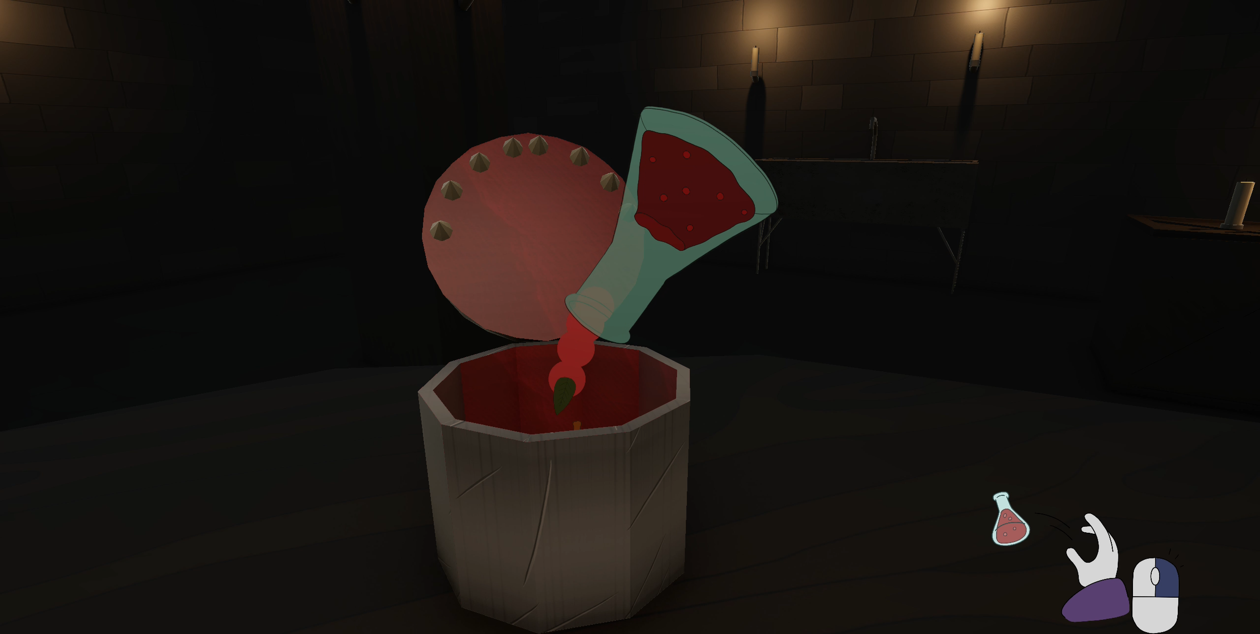 Project Summary: Brew Below is a survival-horror game created for Scream Jam 2025. Players are trapped in a dungeon, tasked with brewing potions for a mysterious figure behind a grate, racing to meet their quota while trying to survive. The game combines the 2D art style used in Wyshbound with a 3D environment to craft an immersive and eerie experience. Environmental and audio design work together to keep players on edge, ensuring that every decision feels tense and consequential.