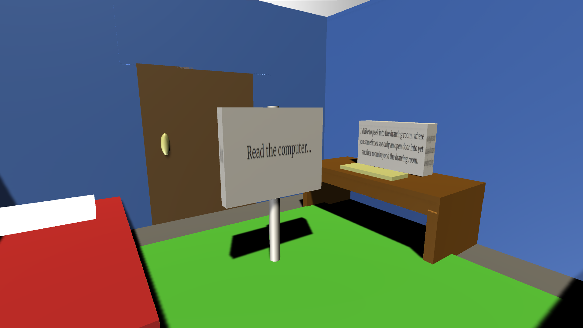 The goal we set out to achieve was to make a game that explores the dread of existentialism through a very simple setting, and minimal words.